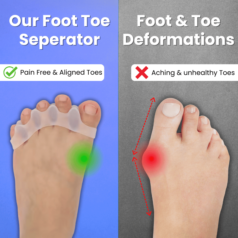 - Improved Toe Alignment - Toe separators can improve toe spacing and relieve pressure caused by issues like bunions or overlapping toes.