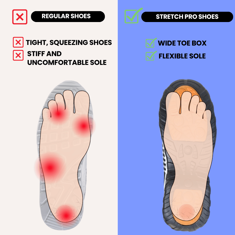 ✓ Stimulate Blood Circulation - The pressure-free design of Ortho Stretch Cushion Shoes helps reduce strain on your feet and allows for healthier circulation throughout the feet and legs. This not only contributes to overall healthier circulation and helps in reducing fatigue, but it's also crucial for managing neuropathy symptoms.